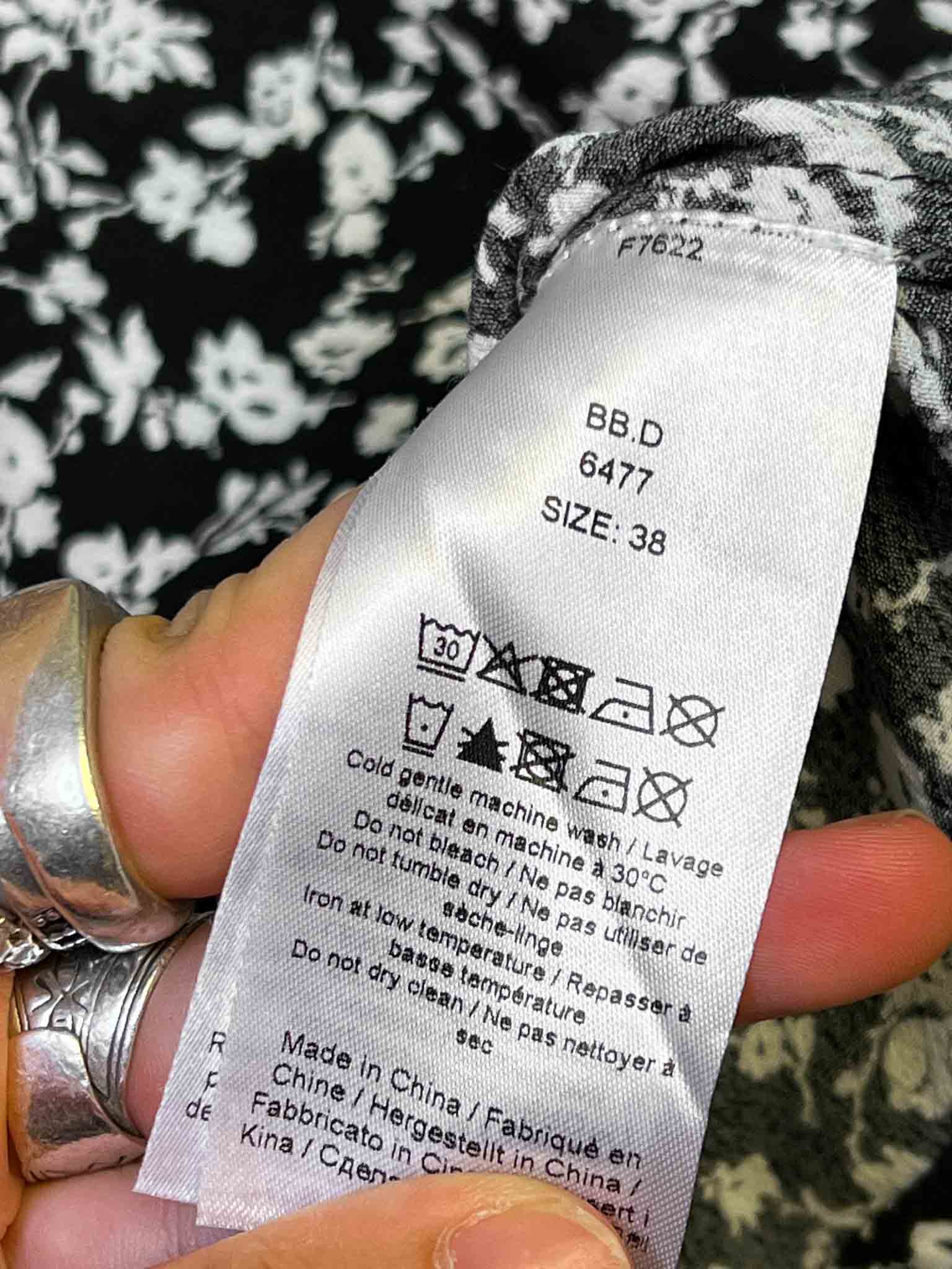 Size 38 (S) | Ganni Black and White Floral Blouse
