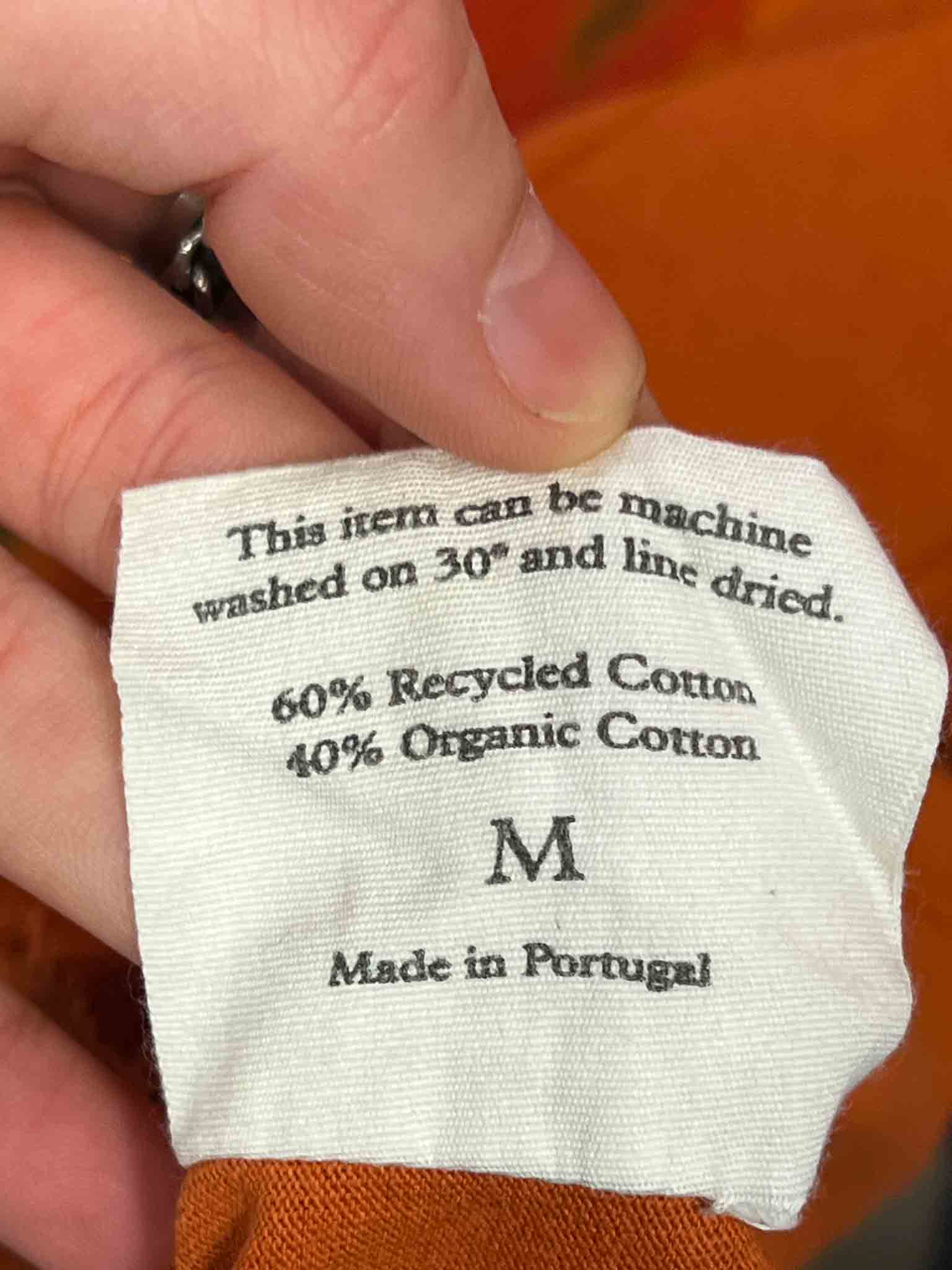 - 60% recycled cotton, 40% organic cotton